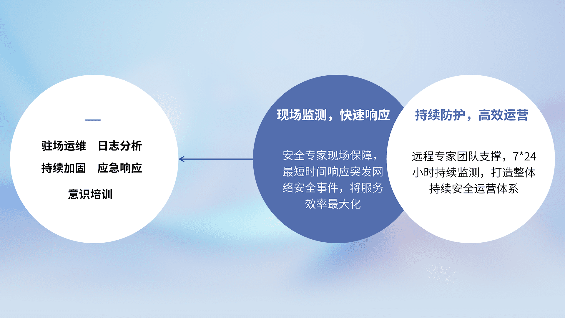 针对客户行业特性,,,,提供专属的一站式安全管理服务,,帮助客户全面感知网络空间威胁,,,,通过安全专家的线上、、、、线下防护支持,,实现风险闭环,,,,将安全保障常态化,,,为客户打造常态化安全运维运营服务。。。
